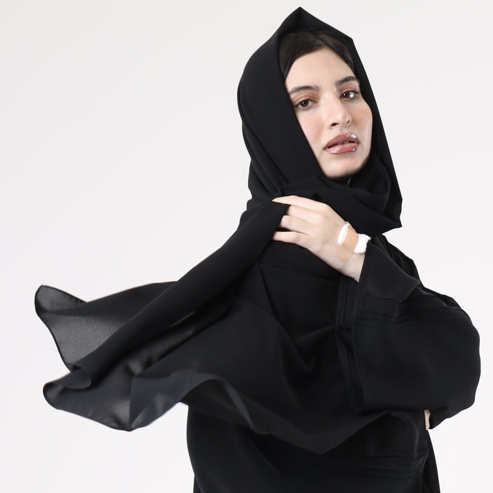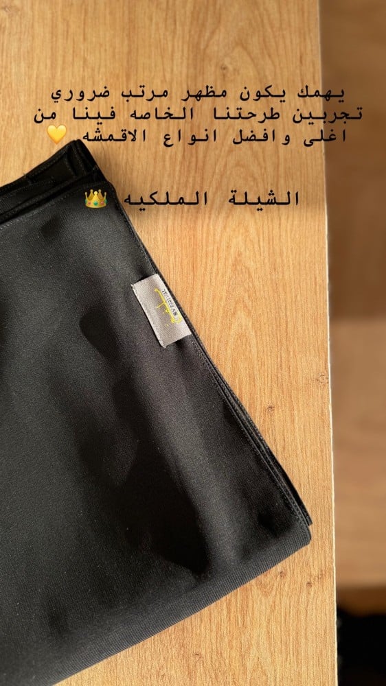 قماش الشيلة الملكية التي تمتاز بسوادها الداكن الذي يناسب عبائتك وتتميز أيضا بثباتها على الرأس وبرودتها وخفتها